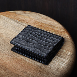 ヴァーミリオンの薄型マネークリップを購入しました。 ベルベットクロコを使用したコインケースのつかないデザインのマネークリップを購入したのですが、 カード4枚収納、紙幣は二つ折りで裏側のスリットに挟む構造で金具を使用していないデザインに一目ぼれしました。 ポケットにマネークリップを入れていて金具が折れたことがあったのでその不安を払拭できる札ばさみだと思います。 全部収納しても厚さは1センチを余裕で切るデザインでシンプルさとスマートさが両立されたとてもいいマネークリップだと思います。 初クロコダイルなので経年変化を楽しみたいと思います。